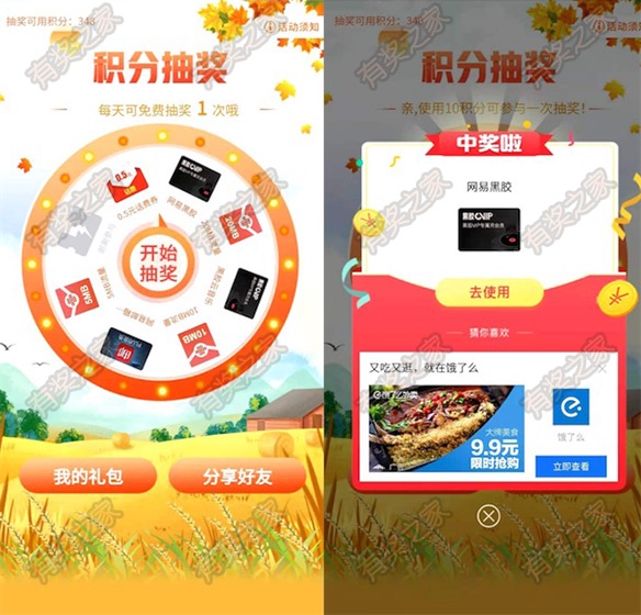 参与活动大概率中奖网易云黑胶会员、话费、流量奖励,小编实测一次就中奖了网易云黑胶会员,感兴趣的有奖之家网友去参加吧。