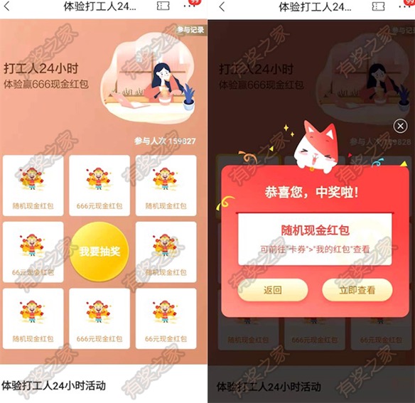 说实话对于大多数人来说,无需体验我们就是打工人,进入活动按照提示抽奖即可,必中一个随机现金红包,感兴趣的有奖之家网友去参加吧。