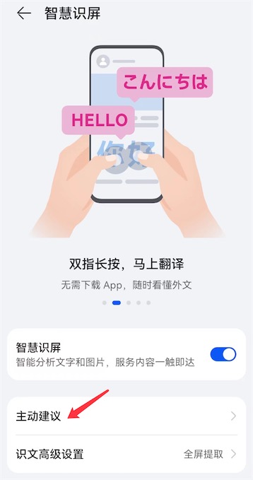2.找到【智慧识屏】进入,并点击【主动建议】