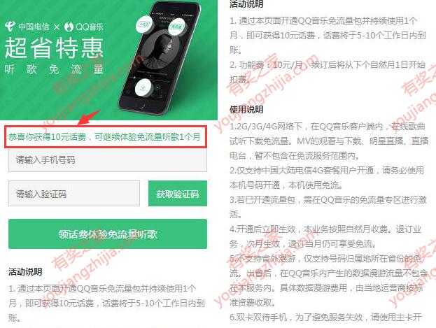 1.点击链接(http://m.imusic.cn/s/NAK9E29K)进入活动页面开通qq音乐免流量包并持续使用1个月,即可获得10元话费话费奖励,话费将在5-10个工作内容到账